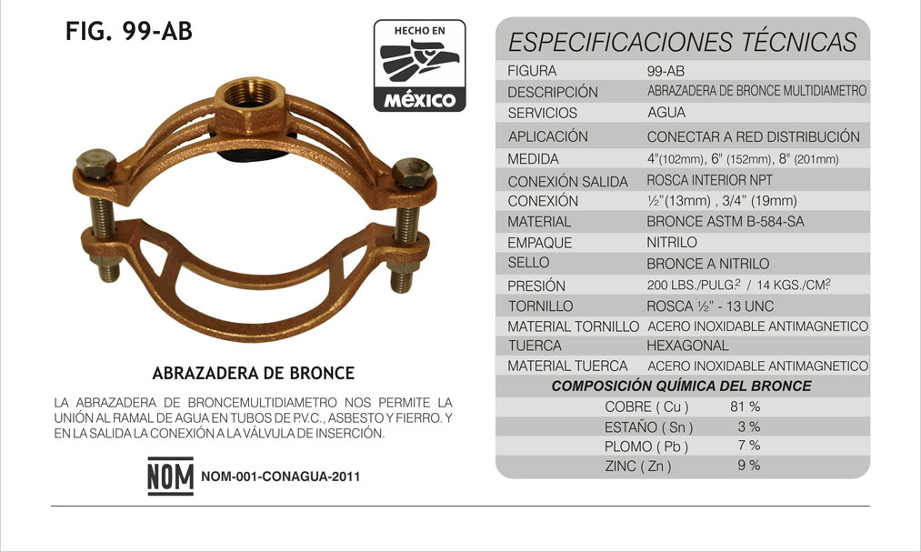 MEDIDAS DISPONIBLES: 2", 3", 4", 6" Y 8" CON SALIDA A 1/2" Y 3/4"